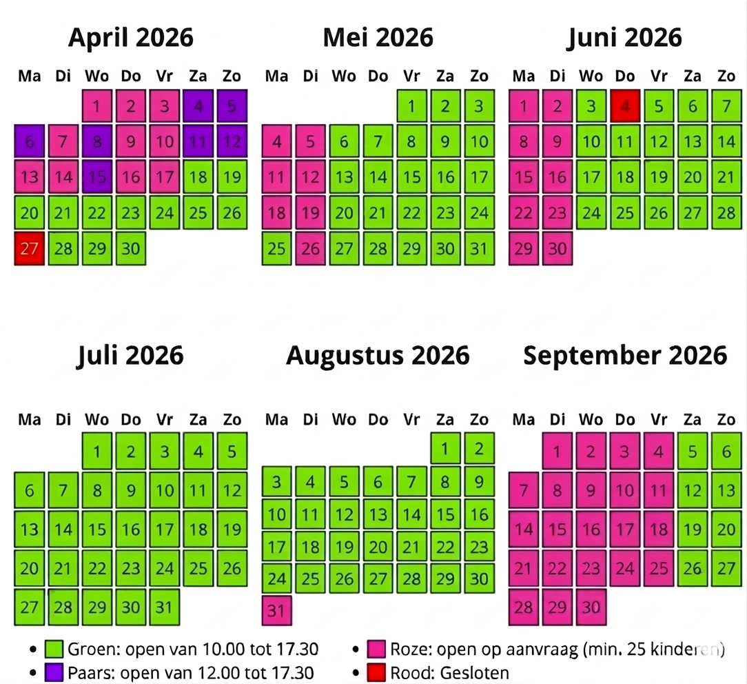 NIEUW: Op maandag dinsdag buiten de vakanties, is het nu ook mogelijk om als school het hele park (incl. attracties!) af te huren á €949,-. Max. 200 personen.